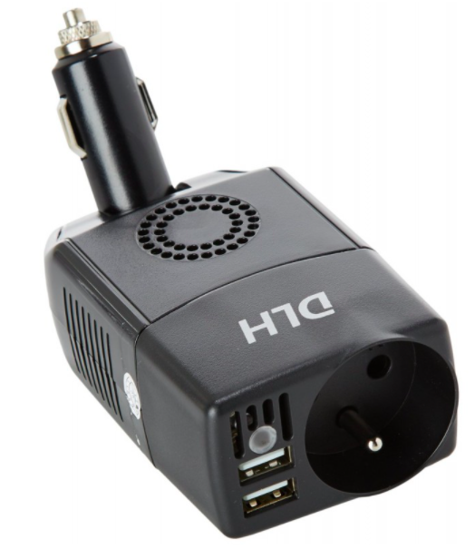 This converter transforms the current from the cigarette lighter socket and allows you to benefit from a 220V power outlet in your car. Then charge all your mobile devices in the car, as if you were at home. A true innovation, DLH Energy has paid particular attention to the safety of this product. From now on, travel with peace of mind with your children! Car/caravan use Insert this converter into the cigarette lighter socket of your car or camper van. It will adapt the current from the cigarette lighter socket to 220V current, like the mains sockets at home. Then connect all your devices as if you were at home! In addition, its swivel head guarantees perfect adaptability to all dashboards. Maximum compatibility Simply connect your device using its original charger or cable. You can use and charge all your mobile devices requiring up to 75W: laptops up to 15 inches, tablets, smartphones, GPS, game consoles, MP3/MP4 players, DVD players, cameras, camcorders, coolers, etc. Follow the charging status thanks to the LED indicators. Triple charge Recharge all your USB devices thanks to the 2 USB ports: tablets, smartphones, GPS, etc. using the power supply of the original device. You can thus charge up to 3 devices simultaneously! Anti-electrocution protection A safety cage protects you from any contact with electrical parts. You thus avoid any risk of electrocution. Travel with your children with complete peace of mind!